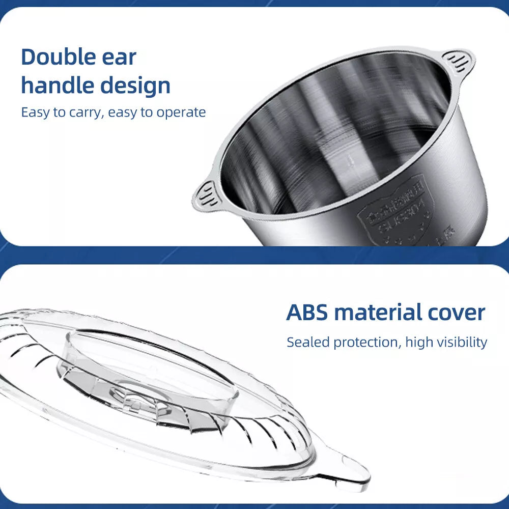 Experience enhanced stability with the non-slip mat that keeps the bowl secure during use, and the ergonomic double-handle design ensures comfortable control. The sealed ABS cover protects while operating, and cleanup is a breeze with all detachable parts being dishwasher-safe.