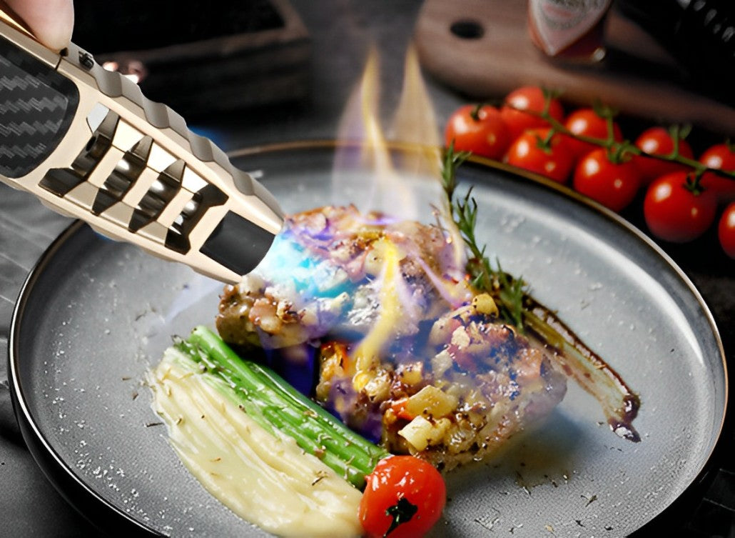 The Windproof Torch Lighter prioritizes safety and efficiency, featuring a leak-proof design and a robust shut-off valve. Easily customize your flame strength for various cooking projects.