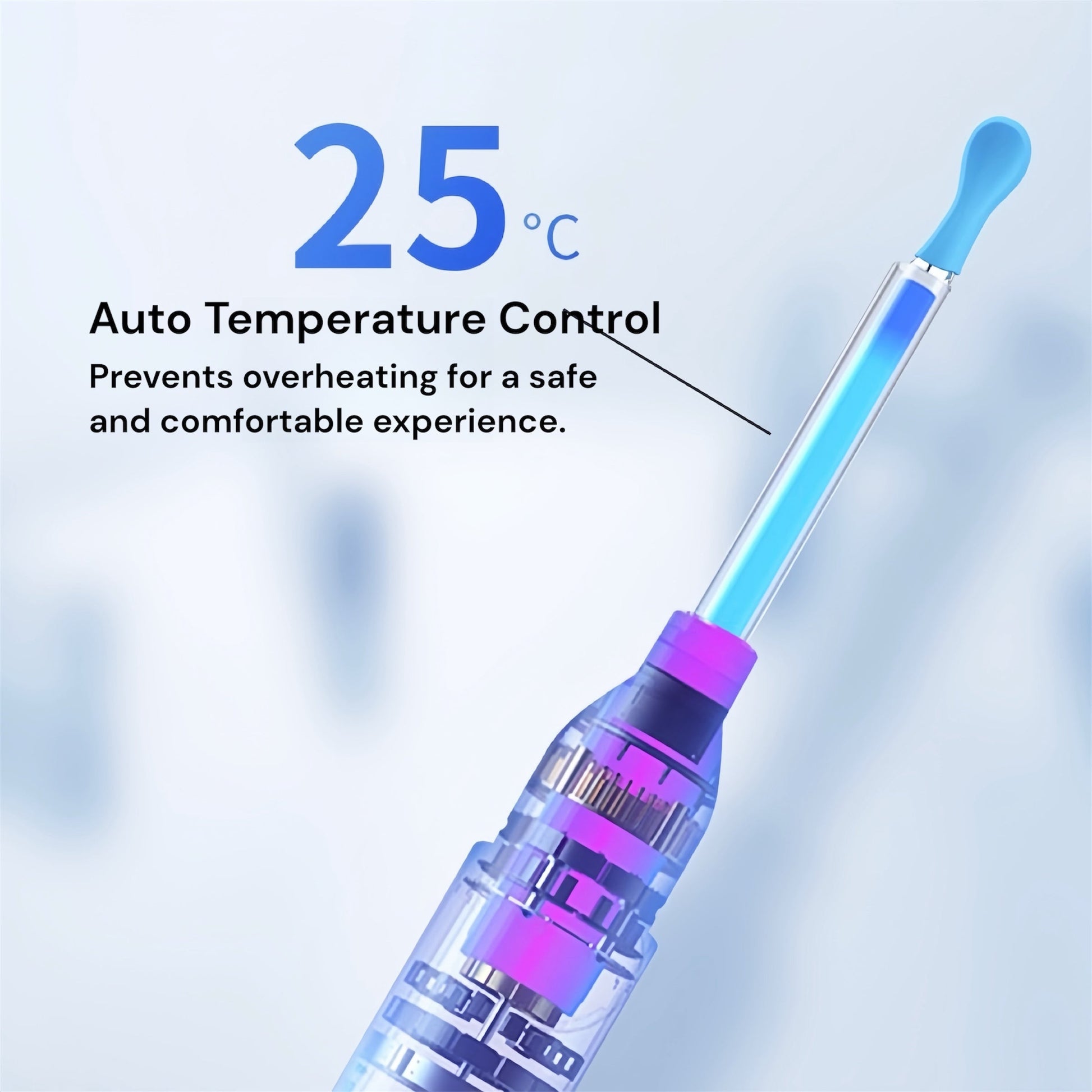 The Ear Cleaner Kit prioritizes your comfort and durability. It features a premium 304 stainless steel tip that is washable and designed to last. With five soft, replaceable silicone scoops in various sizes, you can enjoy a gentle yet thorough cleaning experience tailored to your specific needs. An automatic heat-control system keeps your ears cool and comfortable throughout the cleaning process.