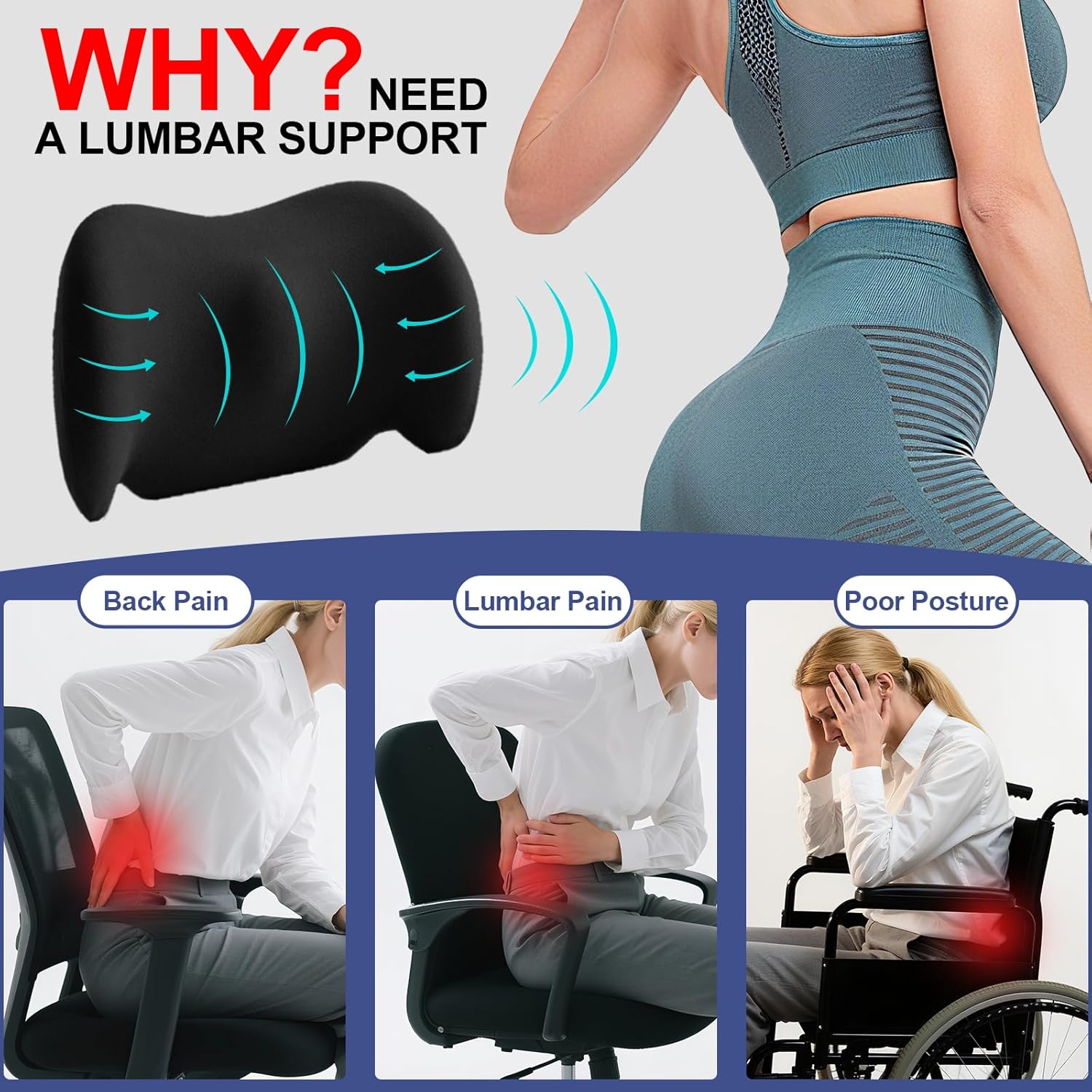 Ultimate Lumbar Support Pillow: Memory Foam Back Cushion for Car, Office, and Wheelchair Comfort