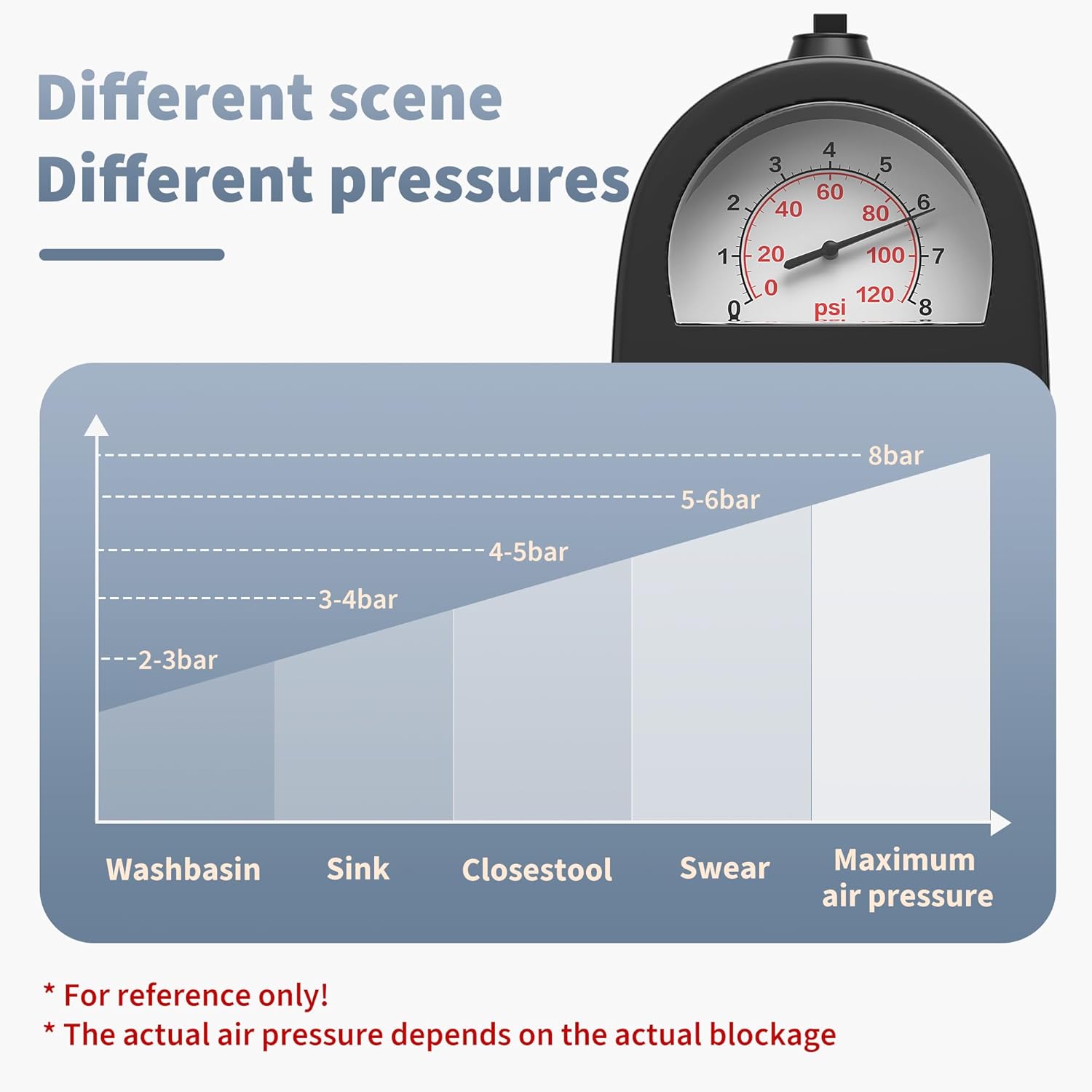 Real-Time Pressure Monitoring: The integrated barometer allows you to monitor air pressure while inflating, ensuring safe and effective use without the risk of splashes or damage to your plumbing.